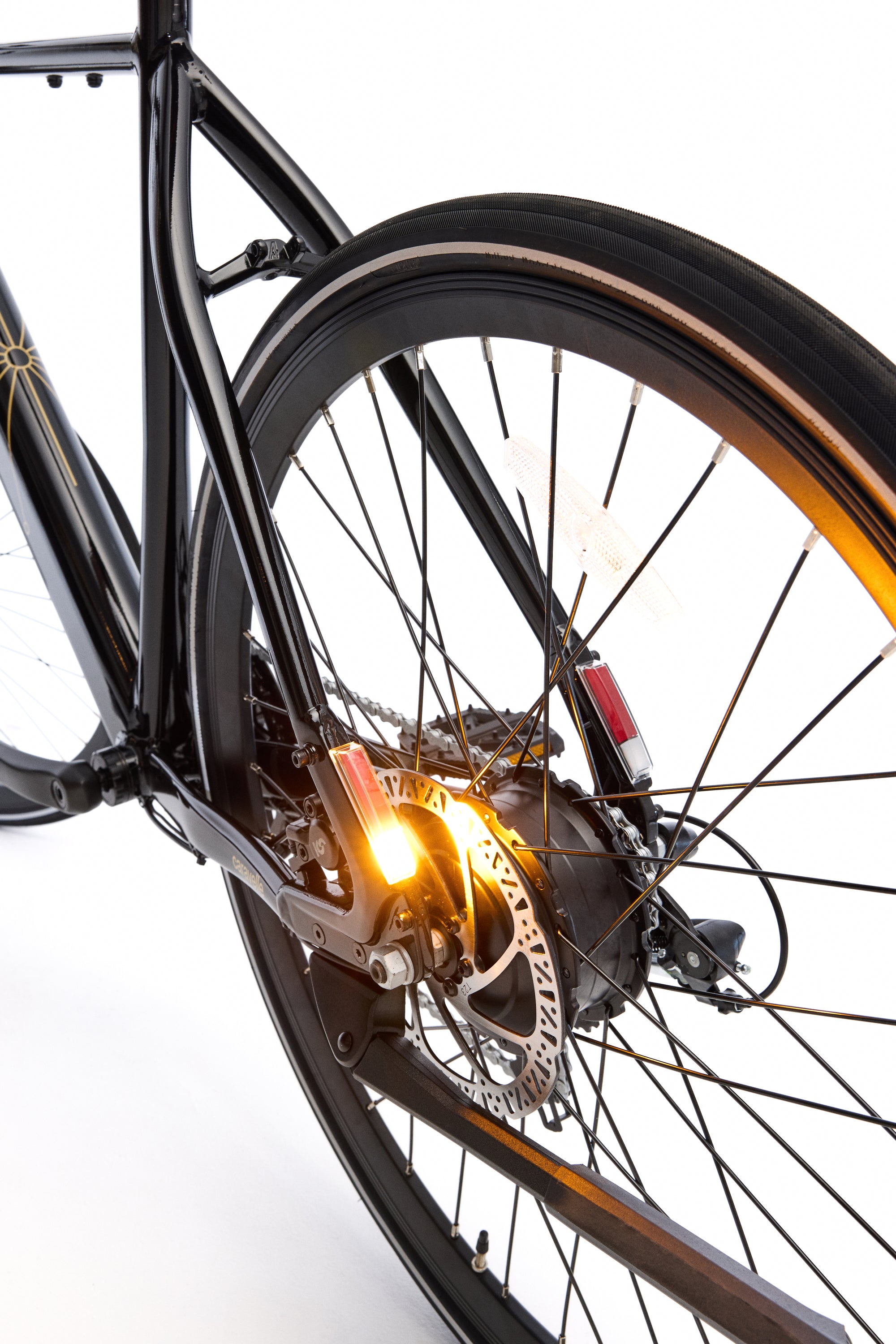 Des feux de freinage intégrés et des clignotants garantissent que vous soyez vu et compris dans la circulation, renforçant votre sécurité et votre visibilité à chaque virage. Équipé d’un système d’éclairage intelligent qui réagit à vos mouvements, vous gardez toujours le contrôle — et restez toujours visible. Le cadre offre également suffisamment d’espace pour accueillir des pneus plus larges, idéal si vos trajets urbains se transforment en aventures du week-end.